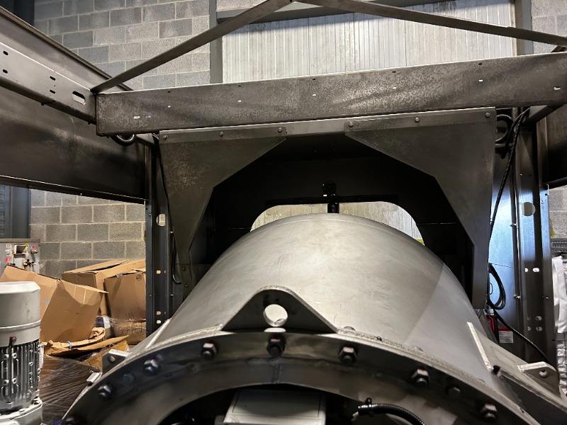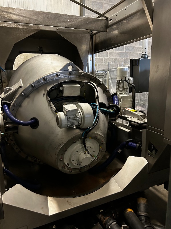 A surface which has been polished electrolytically. Both the rotating and the pivoting movements are carried out by frequency inverter-controlled, direct drives, without v-belts. The batch is unloaded without any requirement for either an integrated belt or a ‘pusher’.